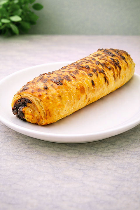Soft, layered pastry rolled with rich chocolate filling, baked to golden perfection.